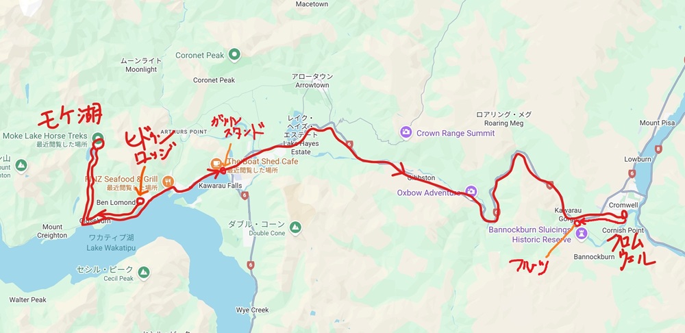 クイーンズタウンからクロムウェルまでは山道(カーブの連続区域も多数あり)を走りますが、とても飛ばしている車が多く、運転に慣れていない人は要注意です。