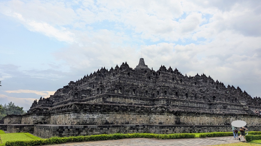 また、高さ約33.5mの巨大なピラミッド状の構造は、仏教の宇宙観を地上に描き出したものであり、「アンコール・ワット」と並ぶ東南アジア仏教建築の最高傑作と評されています。