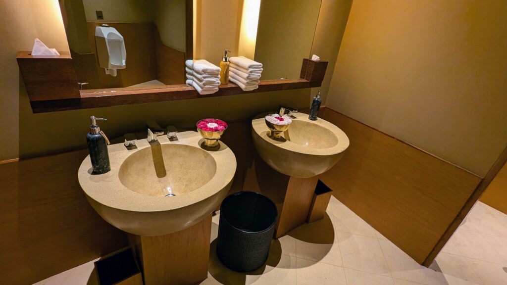 食事中にお手洗いに行きましたが、少し歩いてプールサイドにあるお手洗いをお借りしました。