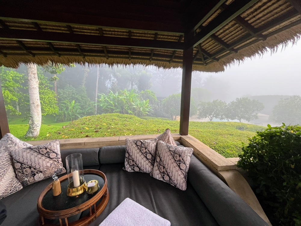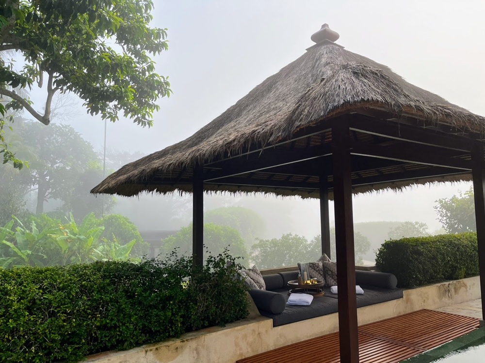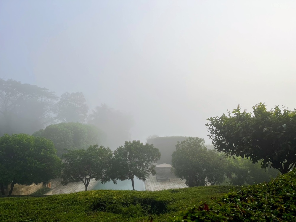 プールも霧に包まれており、幻想的です。