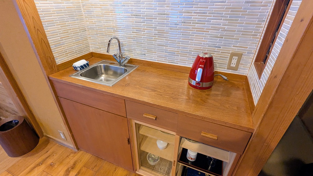 冷蔵庫の上には、お水とクッキーが用意されており、嬉しい心遣いです。
