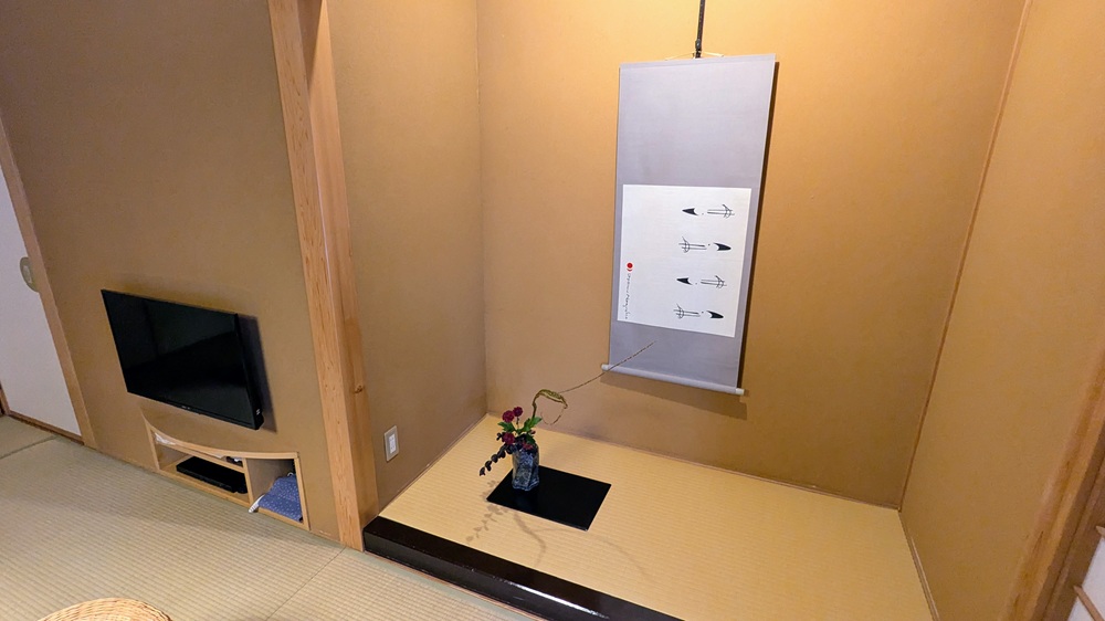 床の間には、掛け軸とお花があり、凛とした雰囲気が感じられます。