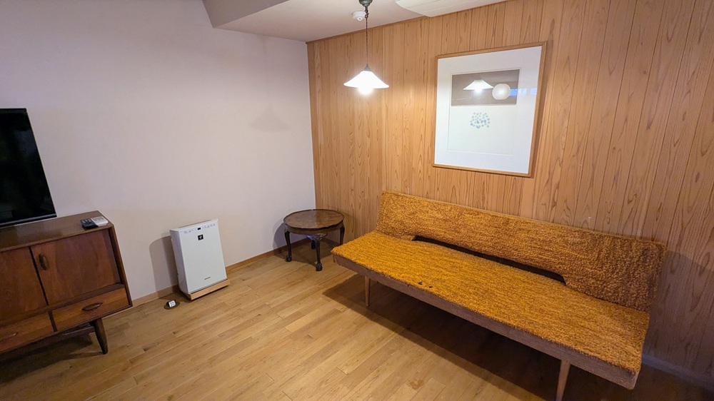 ベンチソファと、2階にも空気清浄機とテレビがあります。