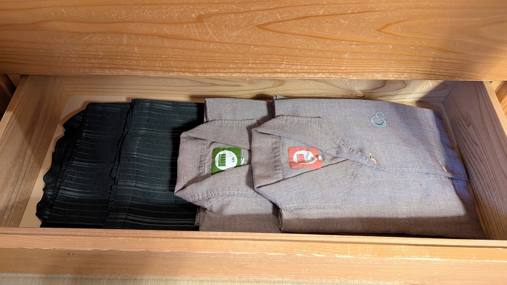 引き出しには浴衣、帯、靴下が綺麗に整えられています。