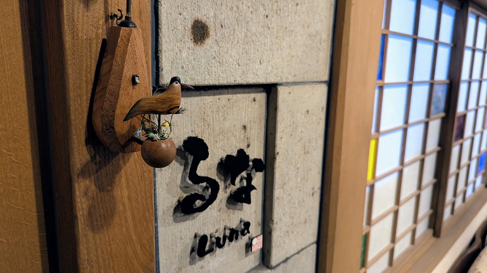 館内にはいろいろなオブジェが飾られていて、中には可愛らしい鳥の姿も。