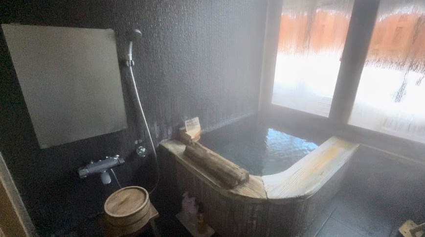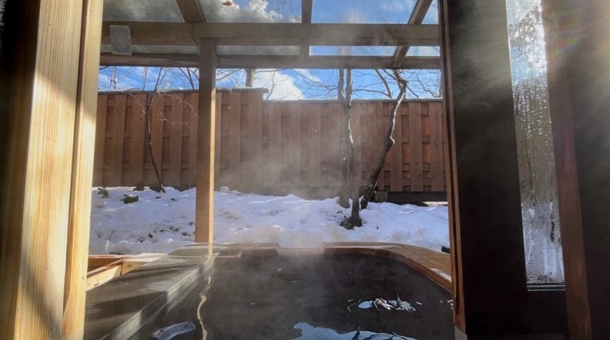 内湯の安心感と、露天風呂のような開放感の両方を一度に味わえるお風呂でした。