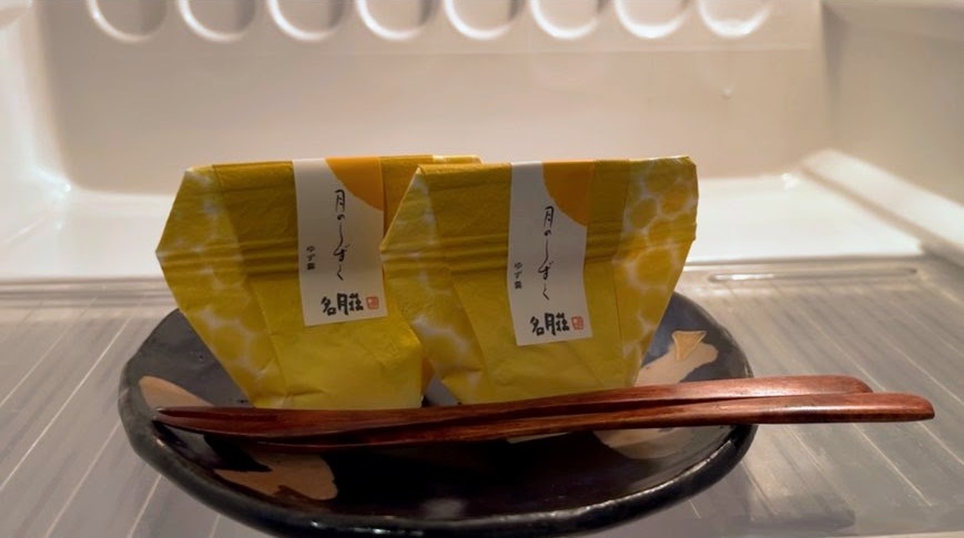 冷蔵庫の中には ゆず味の寒天のお菓子も用意されていました。