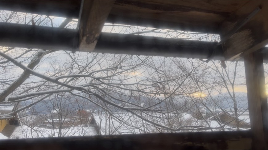 高い位置の窓なので見えずらいですが、窓から外を覗くと蔵王連峰が見えます。