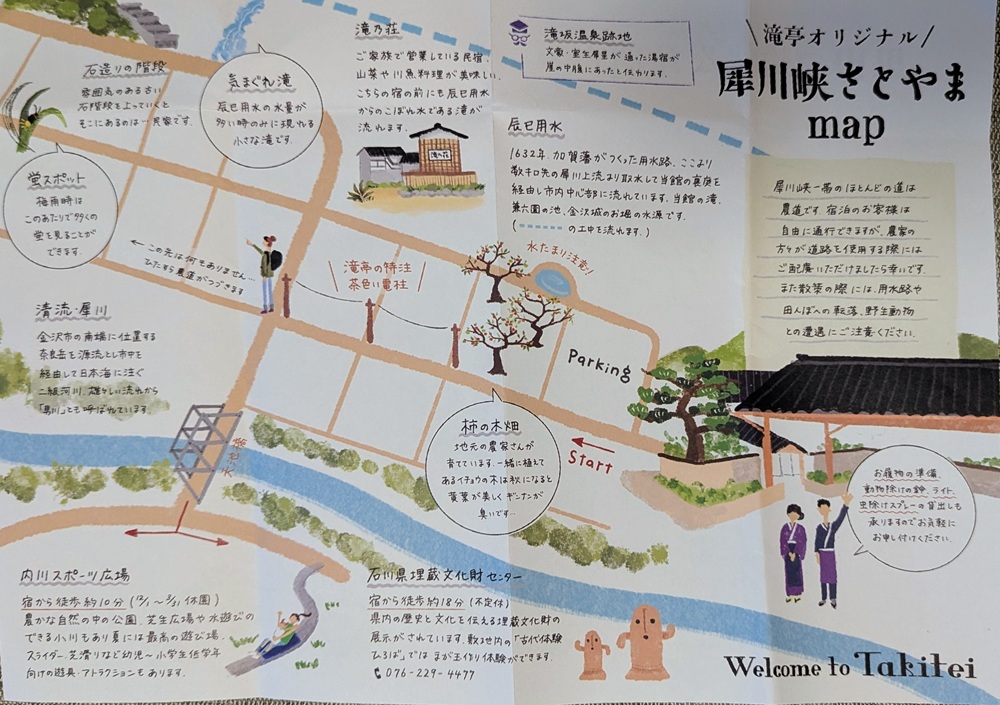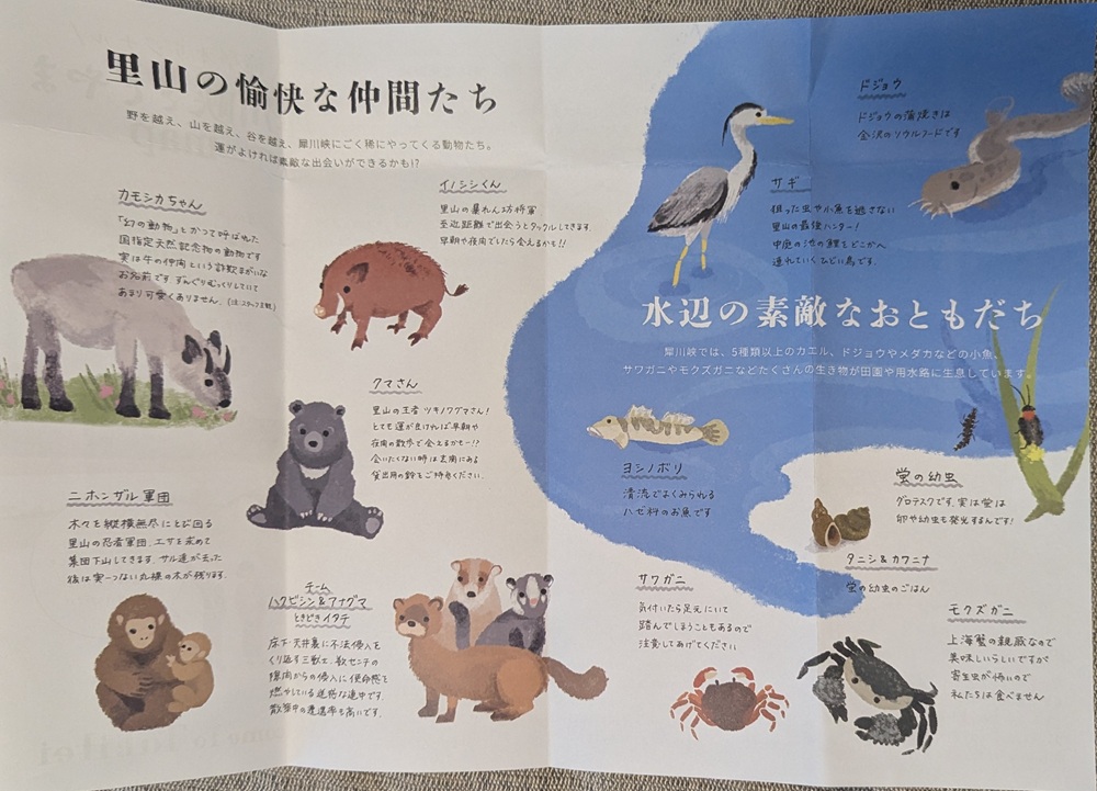 滝亭オリジナルの「犀川峡さとやまmap」と「里山の愉快な仲間たち・水辺の素敵なおともだち」の冊子です。