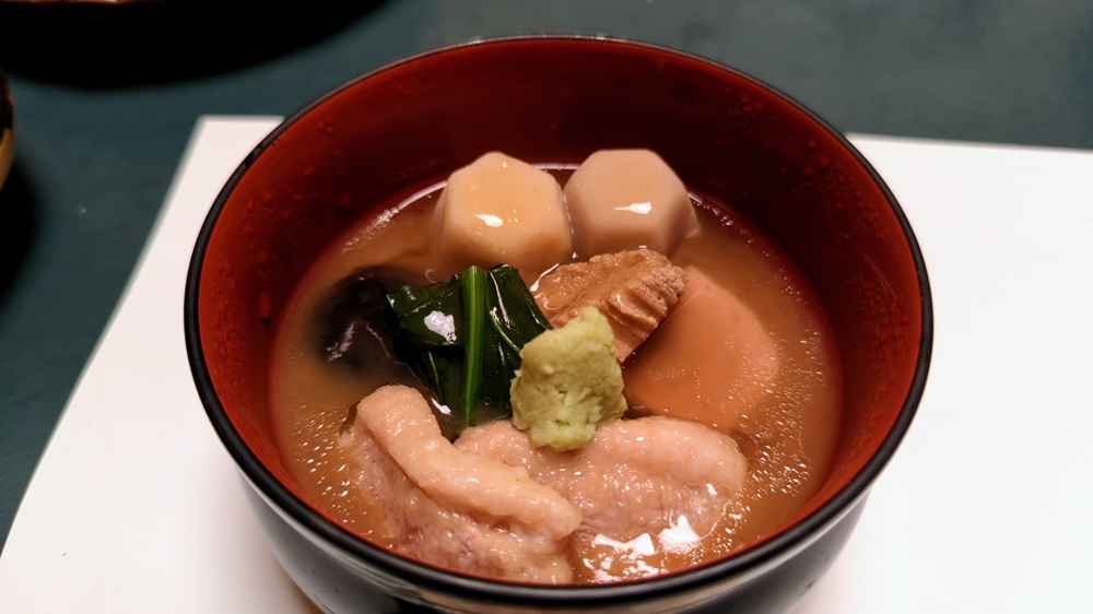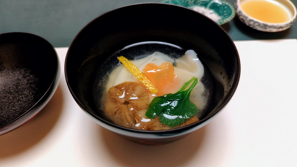 「御椀」能登娘と鮑の雲丹 蕪霙仕立て