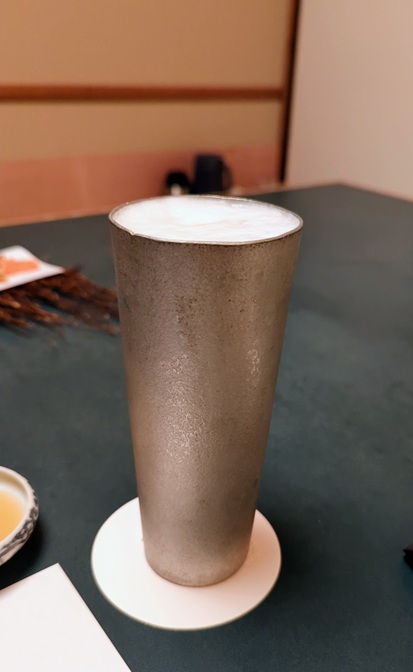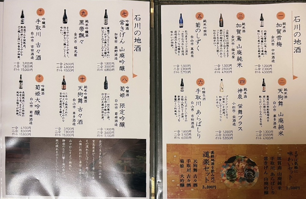 飲み物は「生ビール」と「吟醸生酒 手取川 あらばしり」を頼みました。