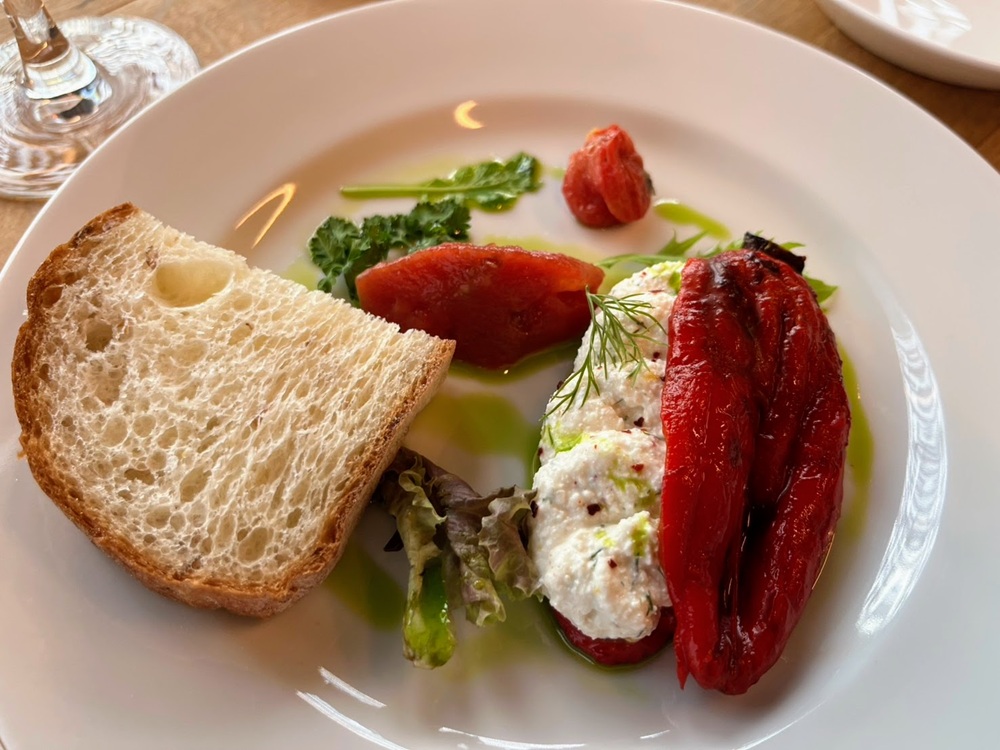 「冷製パプリカのカッテージチーズ・クリーム詰め、トマトサルサ」